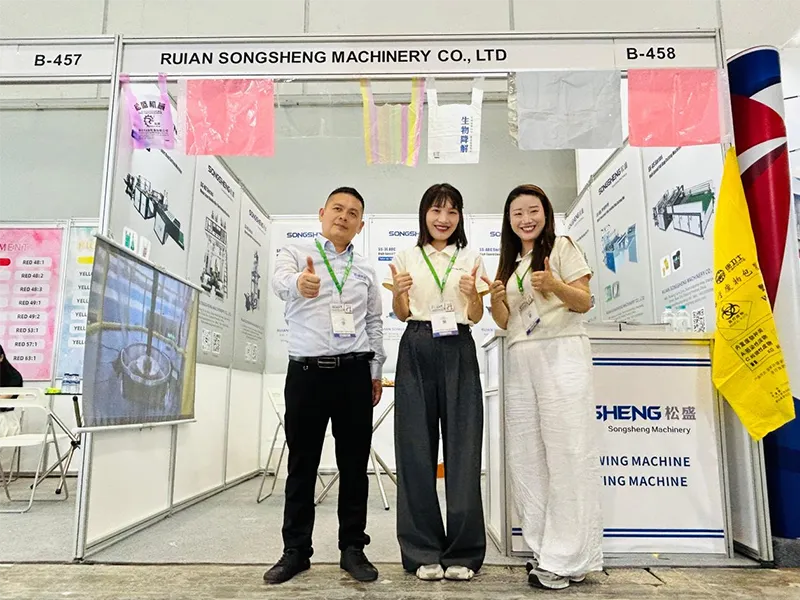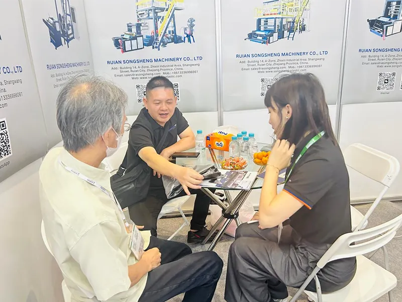 At the heart of Songsheng's exhibition was the showcase of their latest technological advancements designed for efficiency, reliability, and smart manufacturing. The centerpiece of their booth was the newly launched ABC courier film blowing machine, a high-performance machine featuring High production with strong film quality, energy-saving technology reducing power consumption by up to 30%, enhanced precision for complex components.